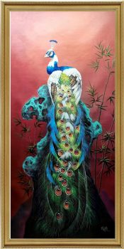 • 手绘动物油画孔雀之王女王气质精品孔雀油画实木框