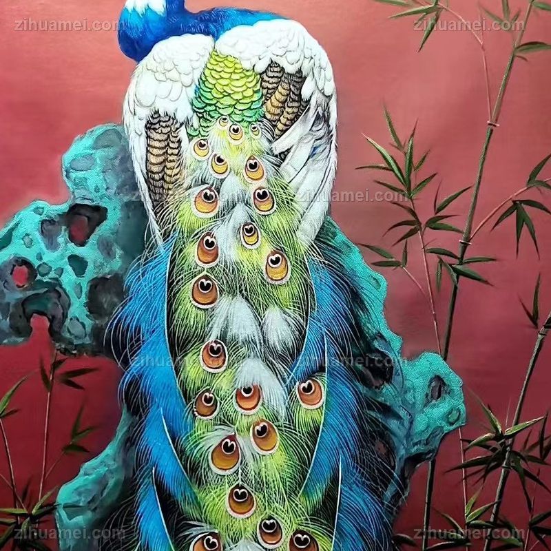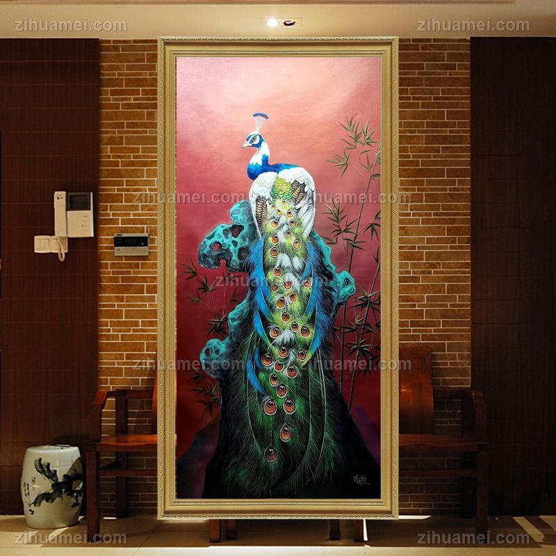 纯手绘孔雀图竹林孔雀节节高升幸福吉祥玄关挂画 手绘