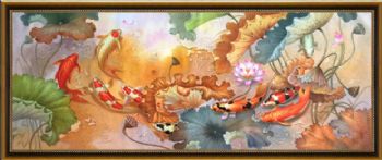 • 新中式年年有余和气生财荷花池九鱼图实木外框