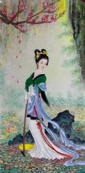 • 美女仕女国画红楼人物水墨画纯手绘人物国画实木外框