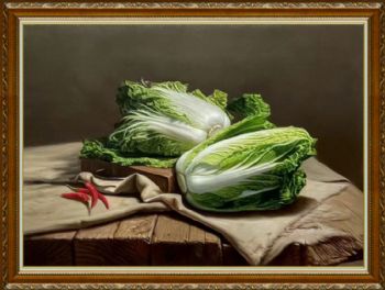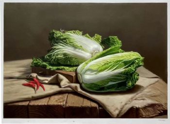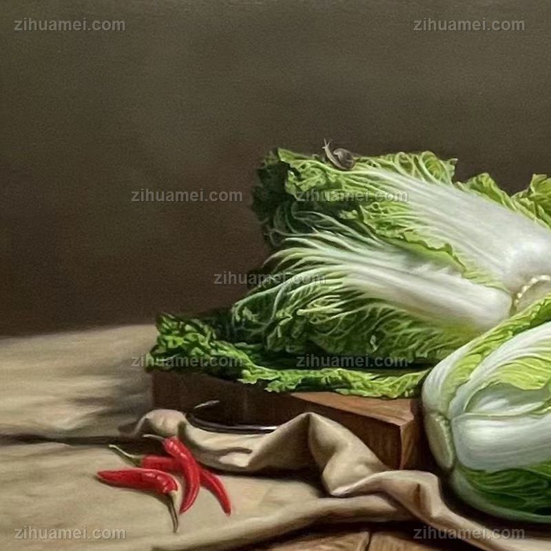 白菜与辣椒写实油画
