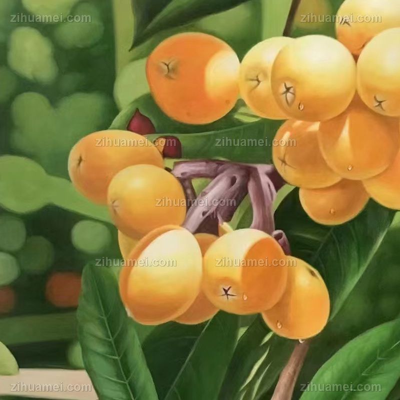 • 餐厅水果静物枇杷写实油画