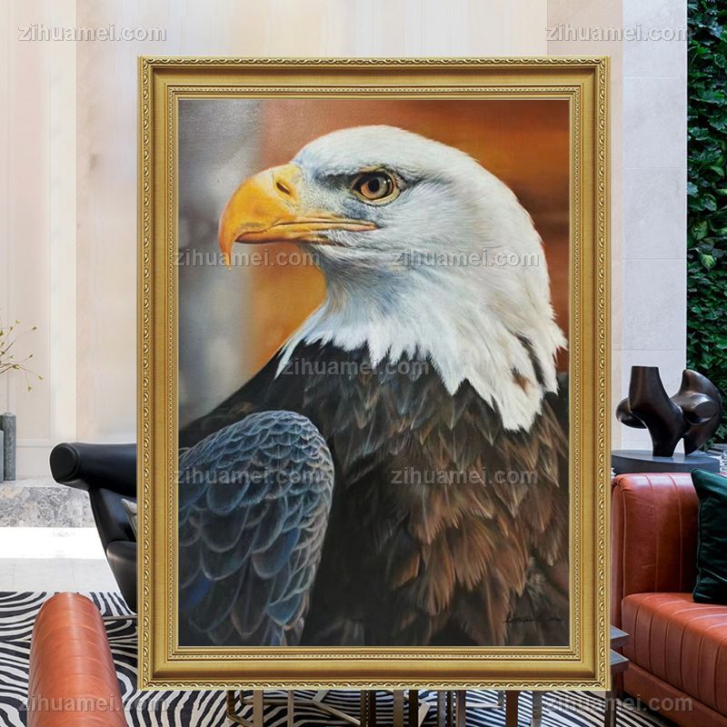 领头人动物写实油画雄鹰静物精品油画实木画框 手绘