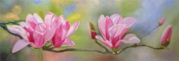 • 卧室床头花卉油画作品玉兰花纯手绘油画