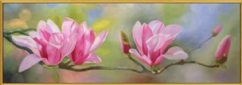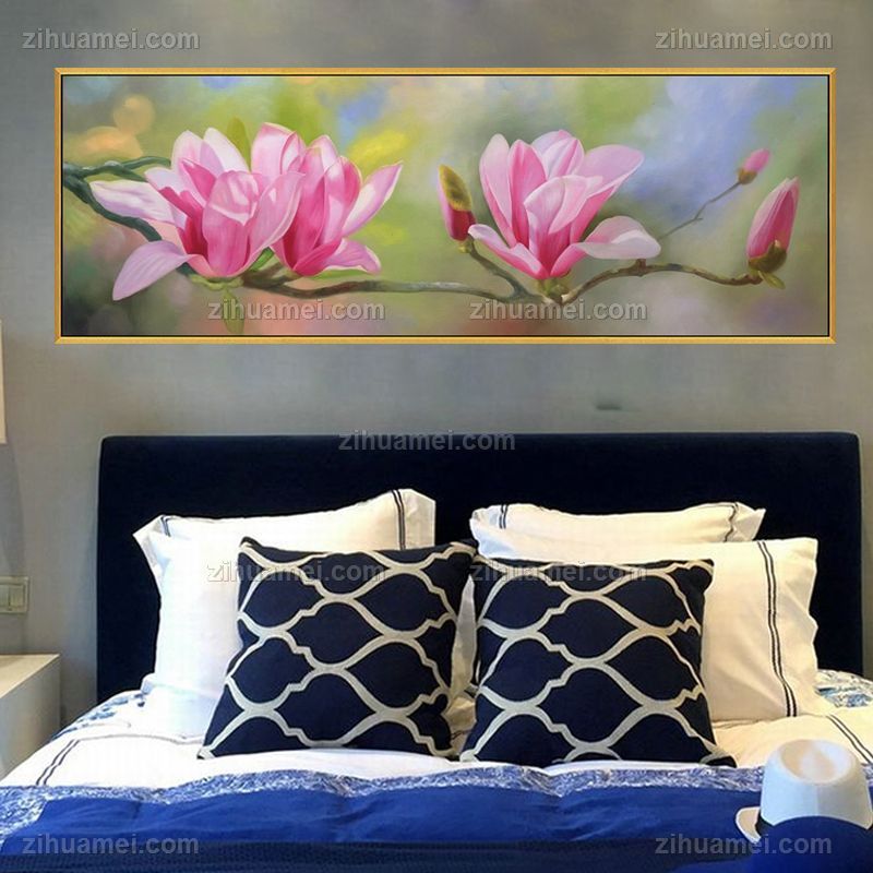 • 中式床头花卉油画作品玉兰花