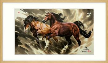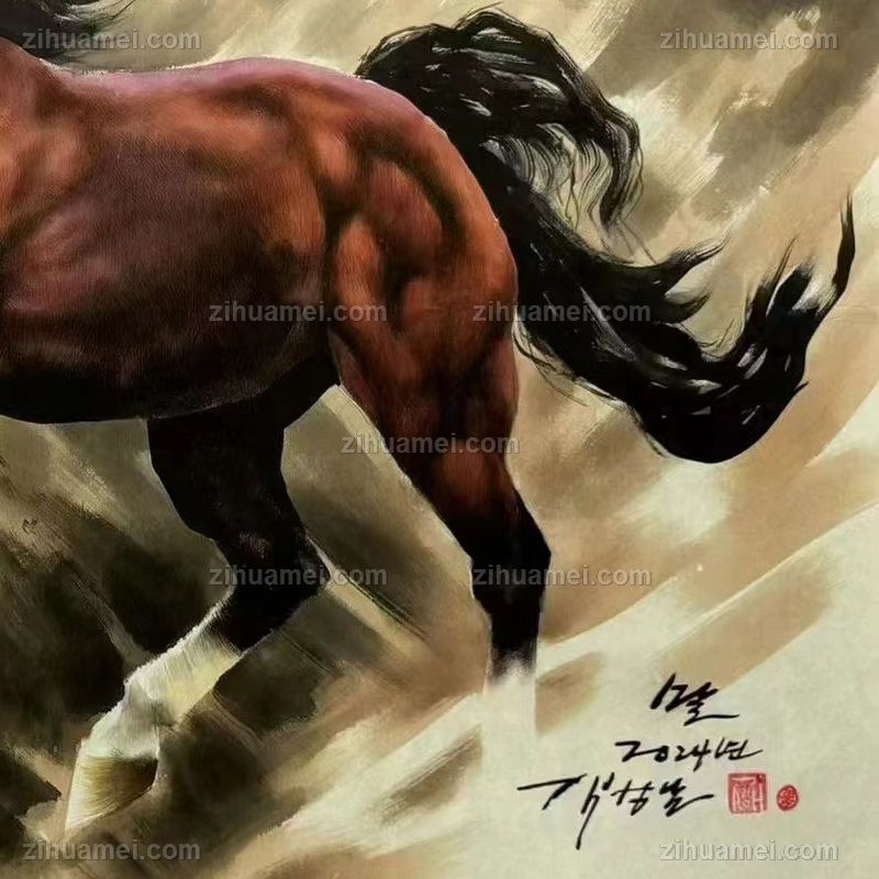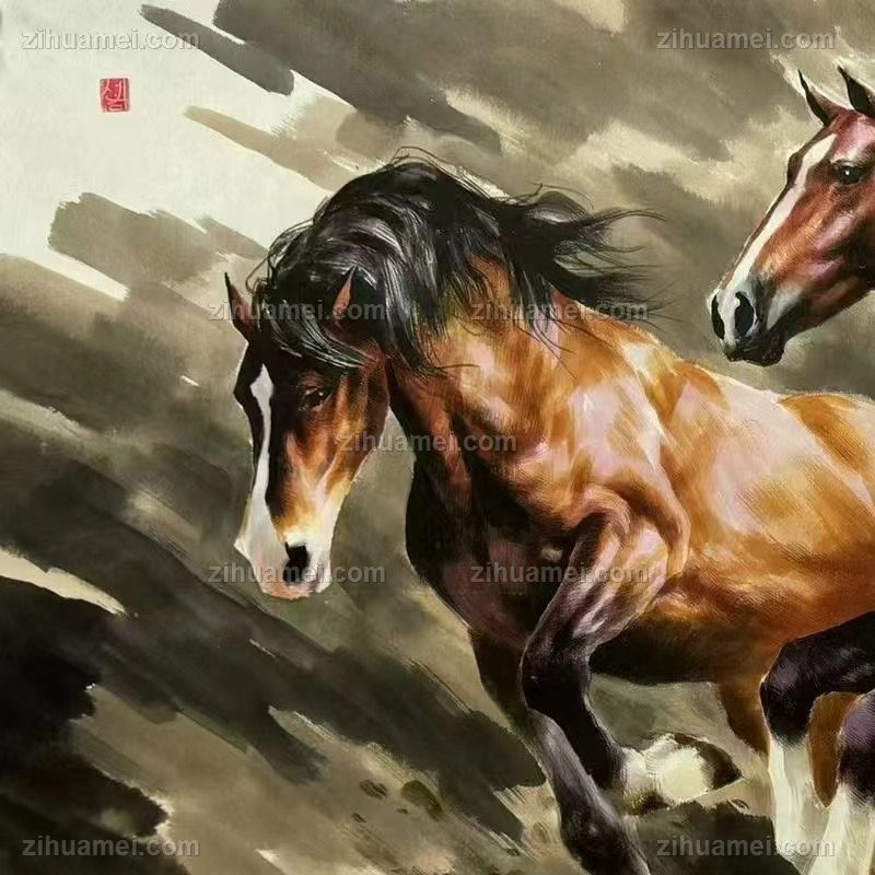 • 手绘动物油画马到成功朝鲜水墨国画办公室挂画