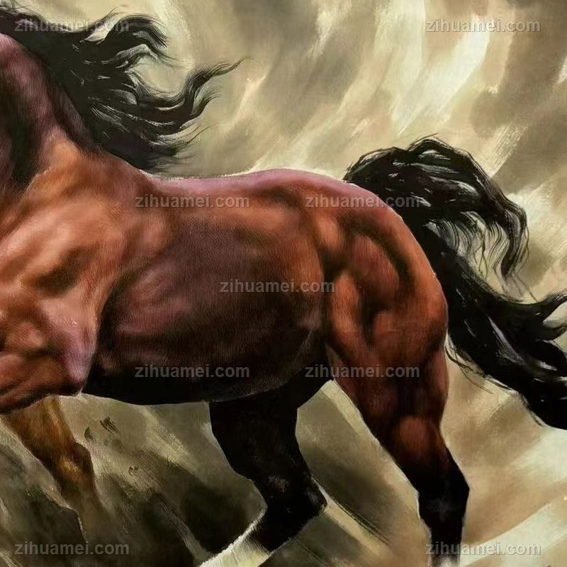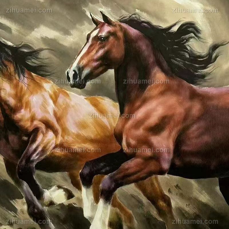 手绘动物油画马到成功朝鲜水墨国画办公室挂画 手绘