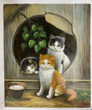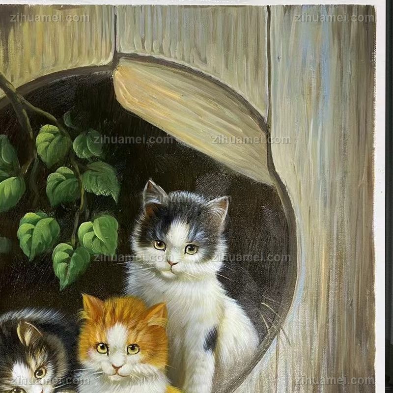 小猫纯手绘动物油画儿童卧室挂画实木外框 手绘