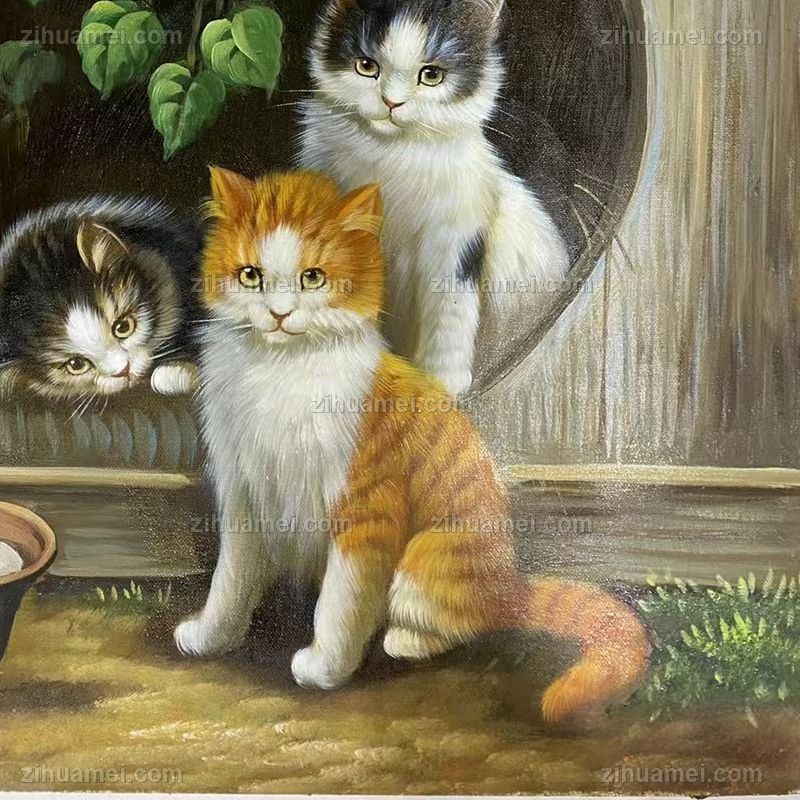 猫蝶手绘动物油画写实油画实木外框 手绘