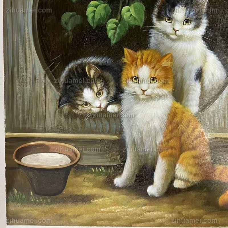 手绘宠物油画儿童卧室油画猫咪动物油画 手绘