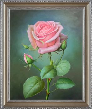 一枝玫瑰花纯手绘花卉油画写实油画 手绘