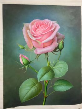纯手绘写实玫瑰花一朵花系列精品花卉油画 手绘