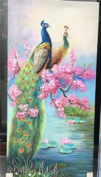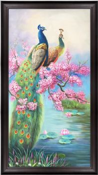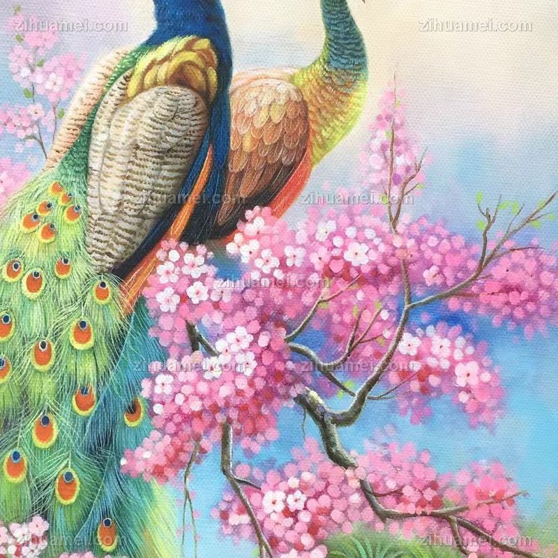• 玄关动物油画作品孔雀图纯手绘油画寓意吉祥如意中式油画