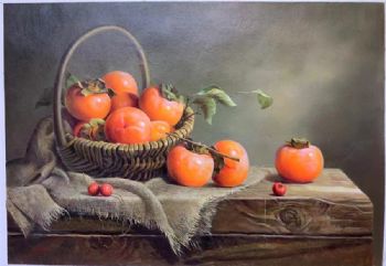 • 写实静物油画柿子油画