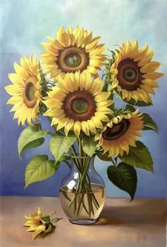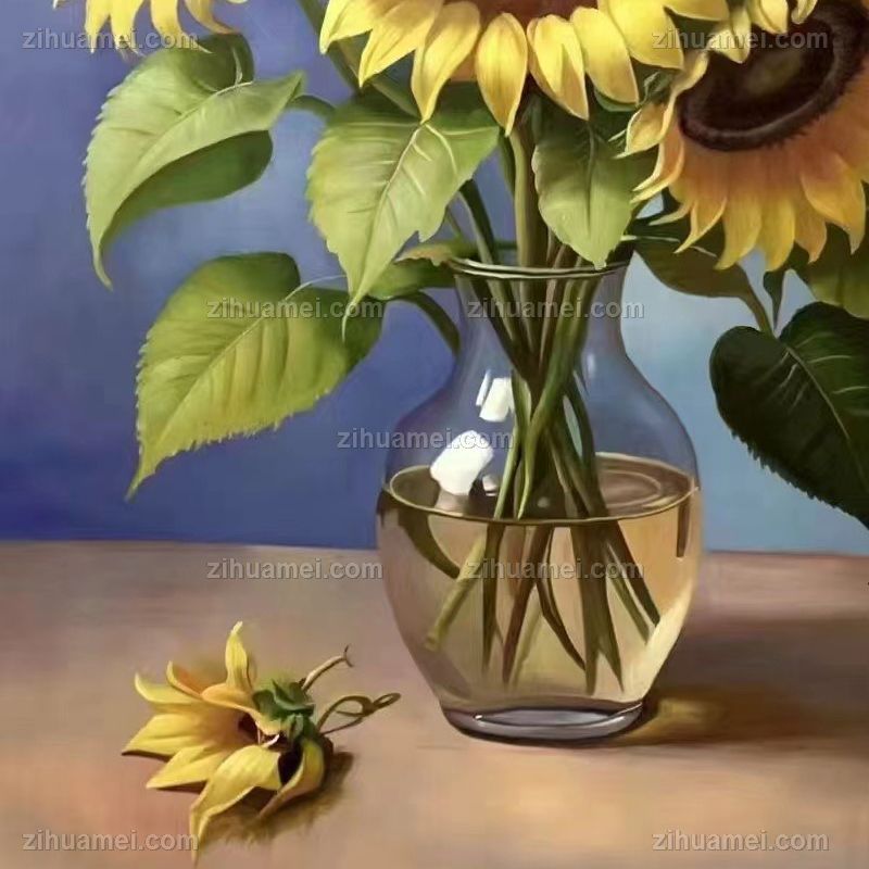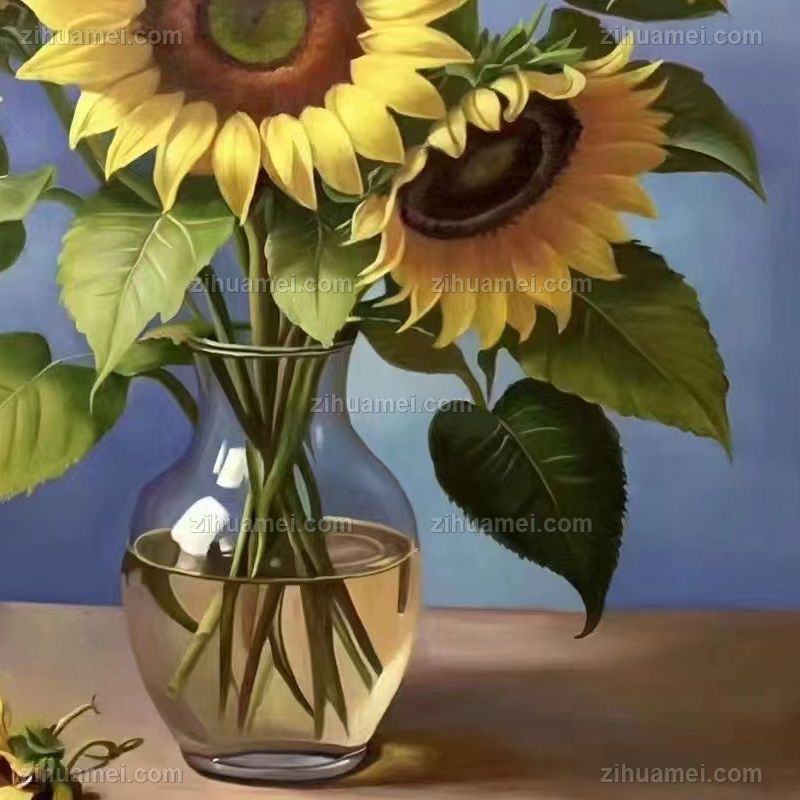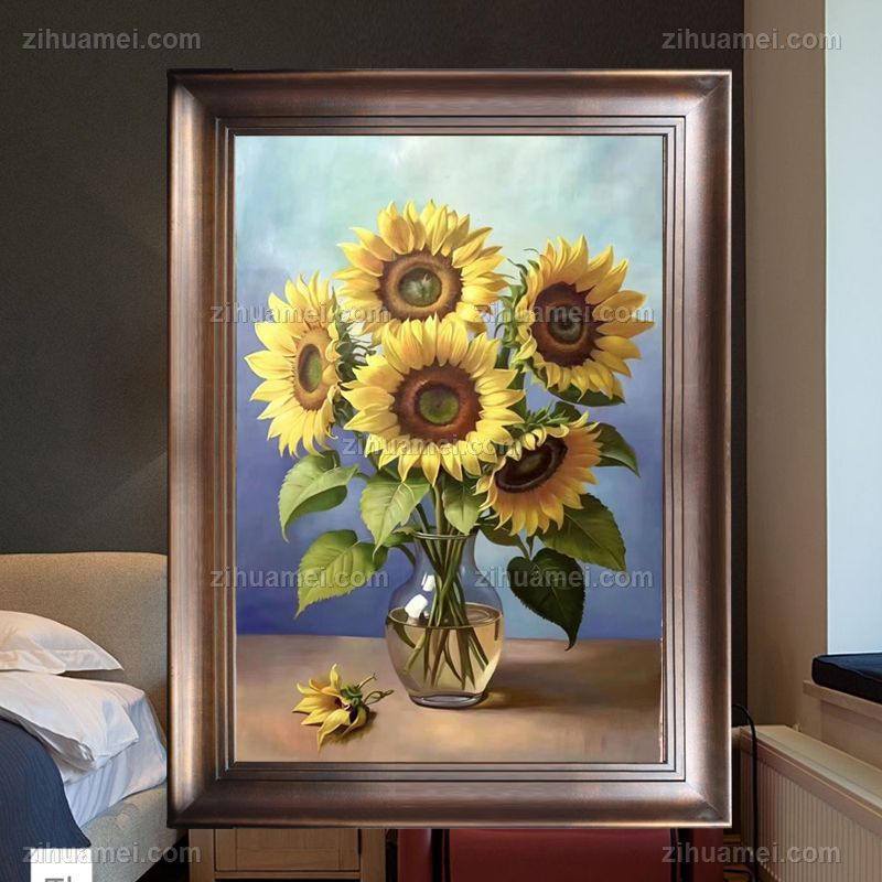 向日葵纯手绘油画花瓶花卉油画PS环保外框 手绘