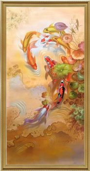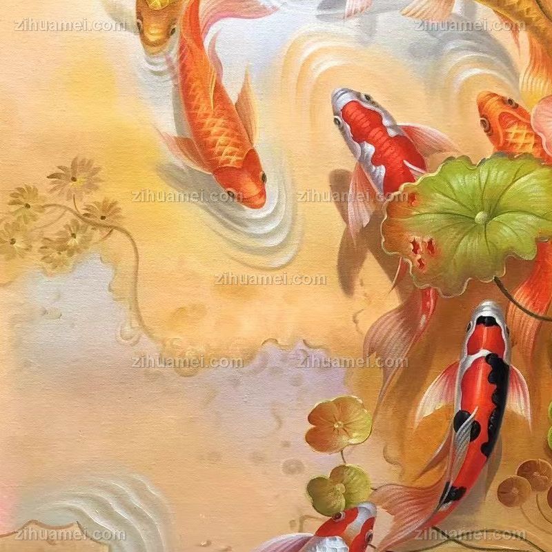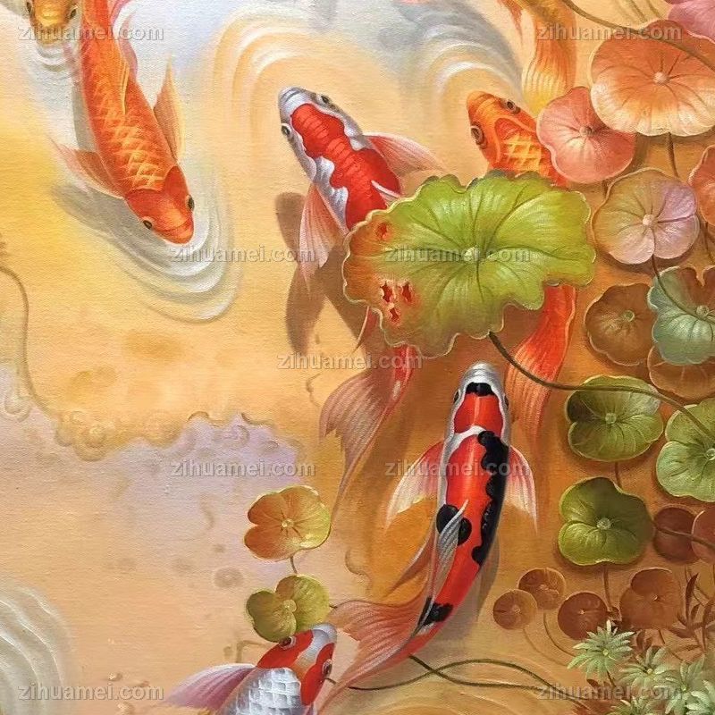 • 年年有余九鱼图油画作品