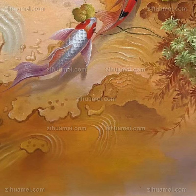 精品写实纯手绘动物油画金龙鱼油画作品 手绘