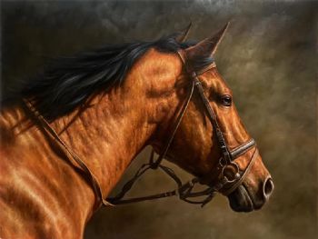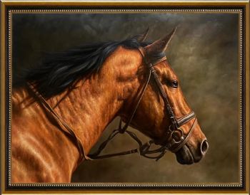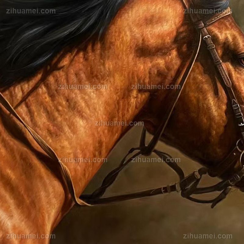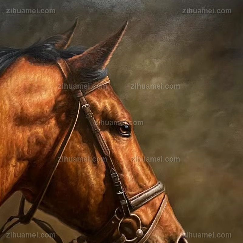 • 精品超写实动物油画一马当先棕色马头书房办公室挂画