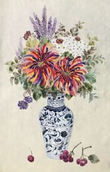 蓝色的花瓶水墨国画纯手绘花卉国画 手绘