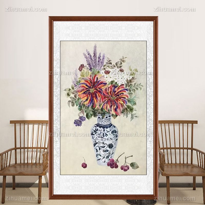 纯手绘富贵瓶花卉水墨国画餐厅卧室挂画 手绘