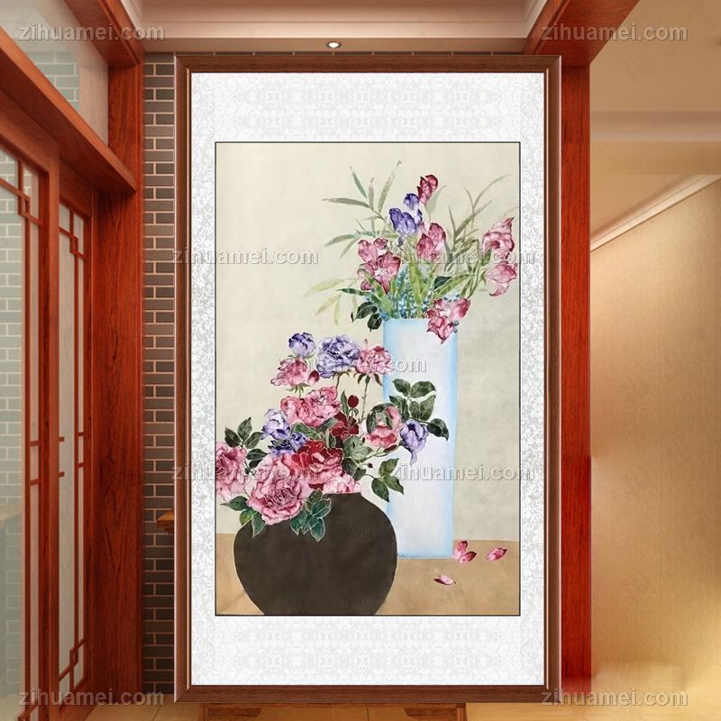 纯手绘富贵瓶花卉水墨国画餐厅卧室挂画 手绘
