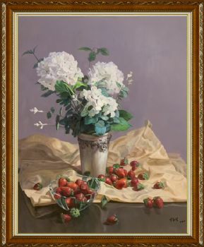 • 收藏精品花卉油画纯手绘花卉油画作品餐厅挂画实木画框