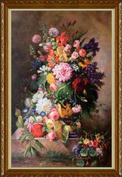 • 纯手绘欧式花卉油画精品花卉油画作品实木外框收藏油画
