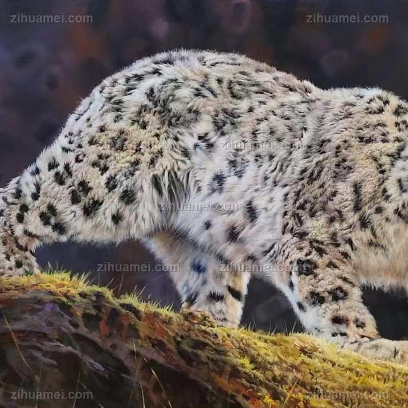 纯手绘动物雪豹写实油画作品收藏动物油画