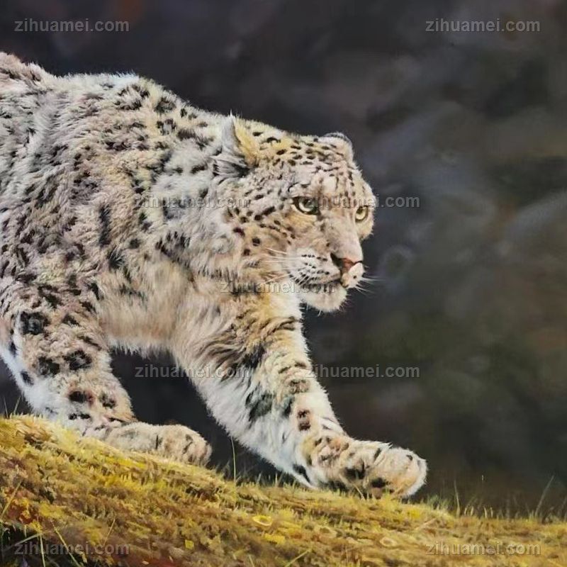 • 纯手绘动物雪豹写实油画作品收藏动物油画