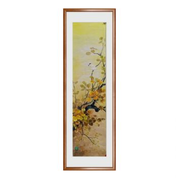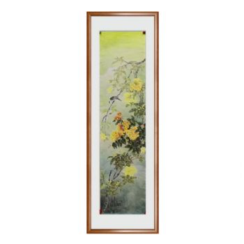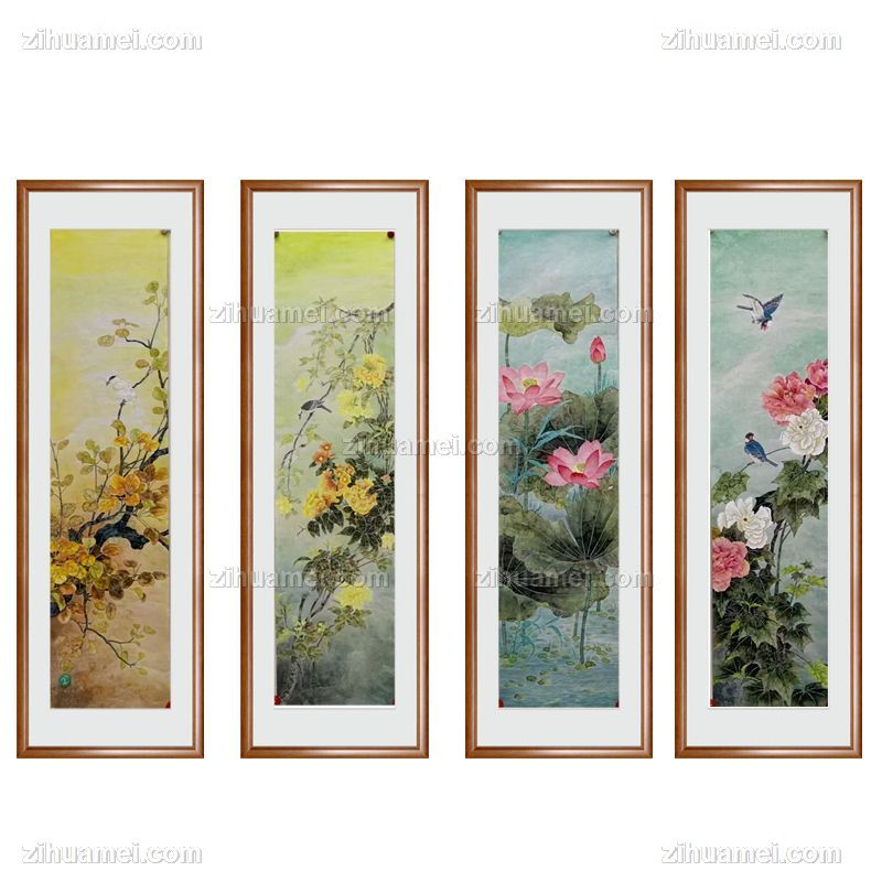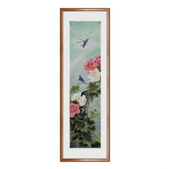 • 中式花鸟国画四尺对开条屏没骨花鸟国画实木外框