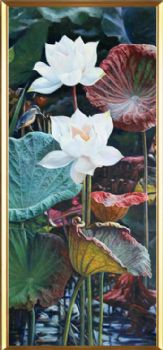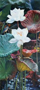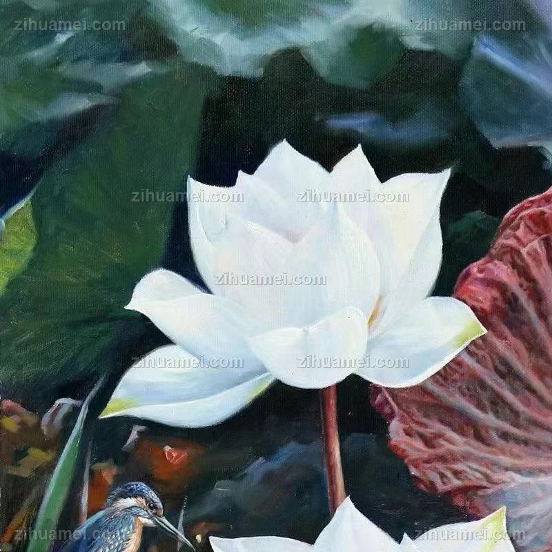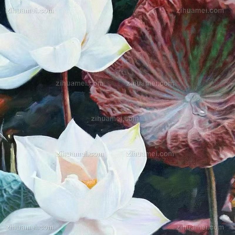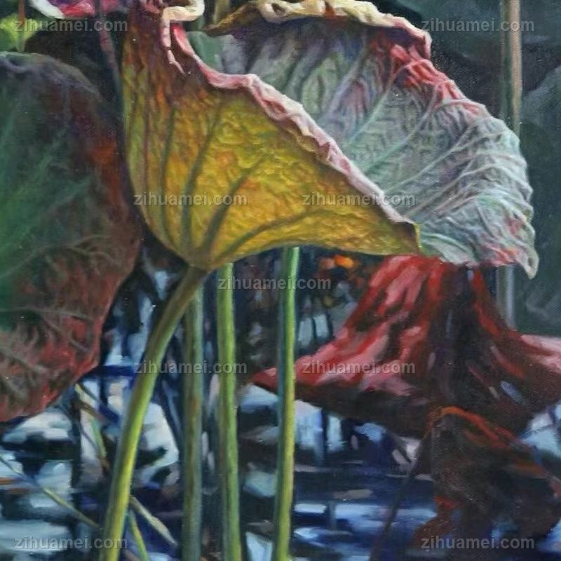 • 写实荷花池风景油画