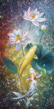 精品写实纯手绘动物油画金龙鱼油画作品 手绘