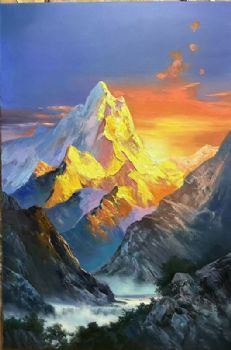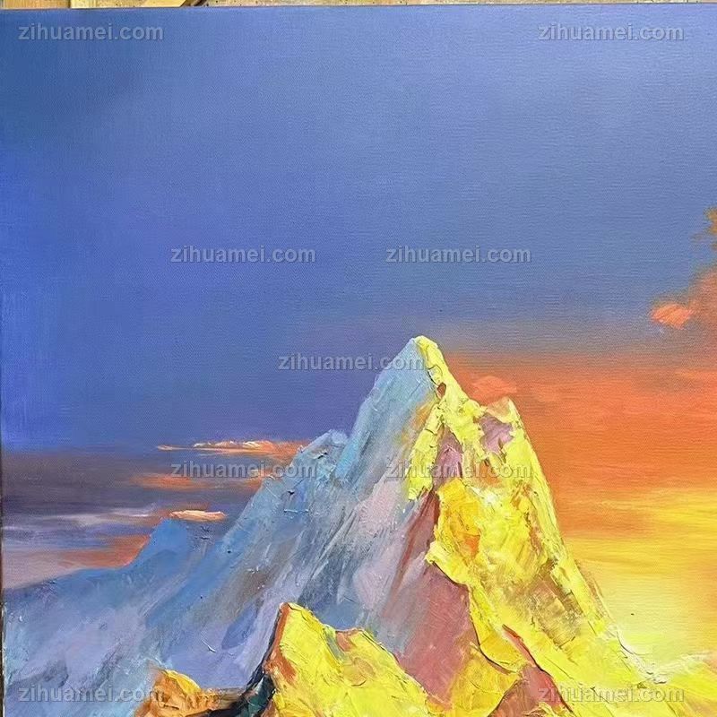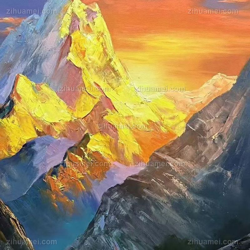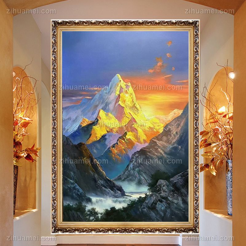 日照金山手绘风景油画客厅玄关装饰画实木外框 手绘