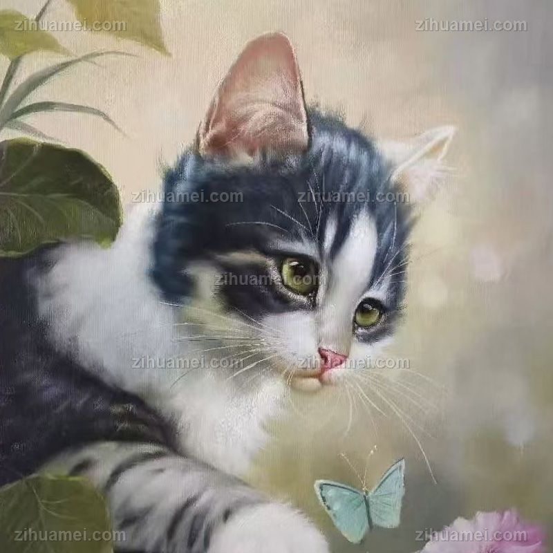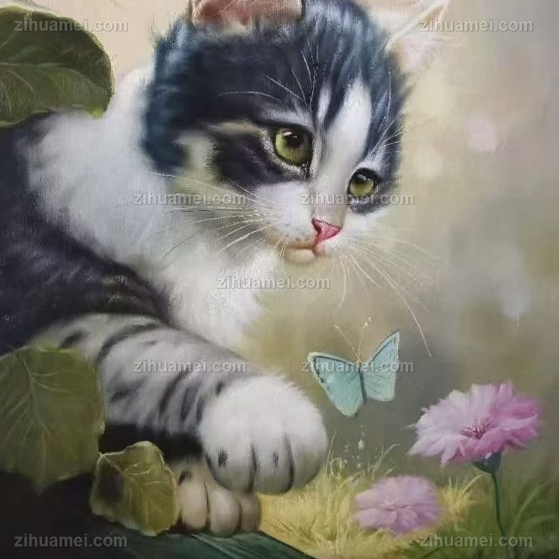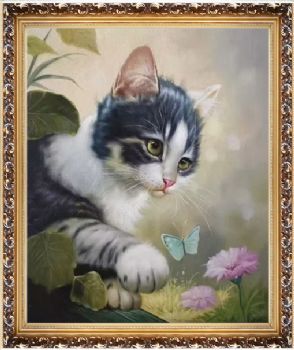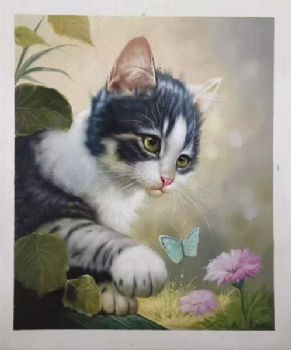 猫蝶手绘动物油画写实油画实木外框 手绘