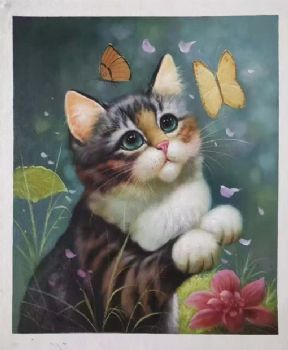 耄耋猫蝶纯手绘动物油画