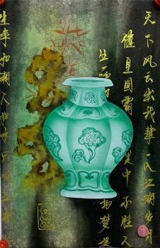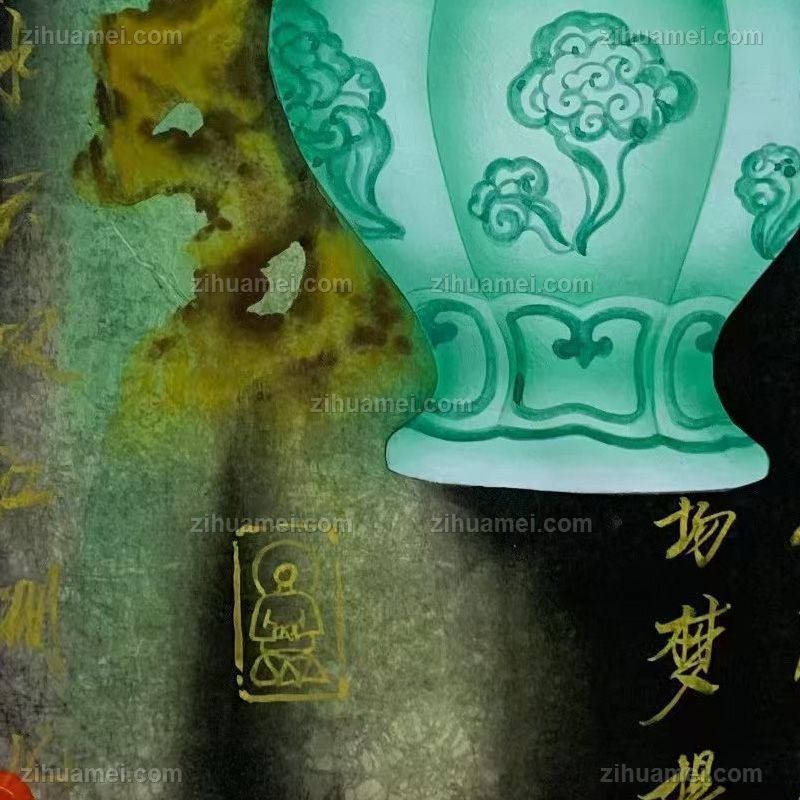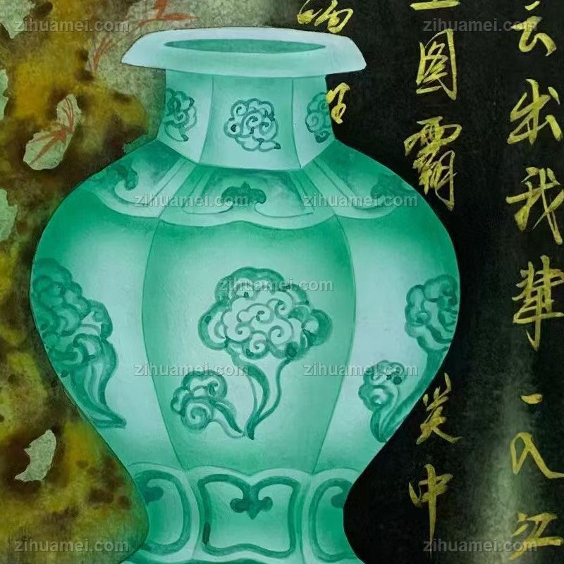 纯手绘工笔花瓶国画彩墨