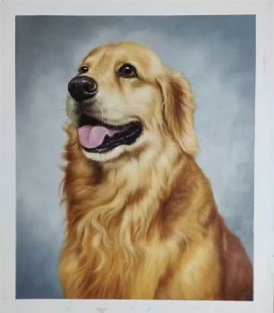 • 庞物动物写实油画金毛小狗