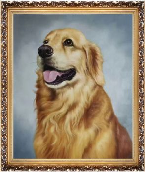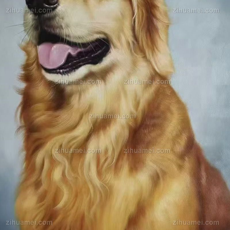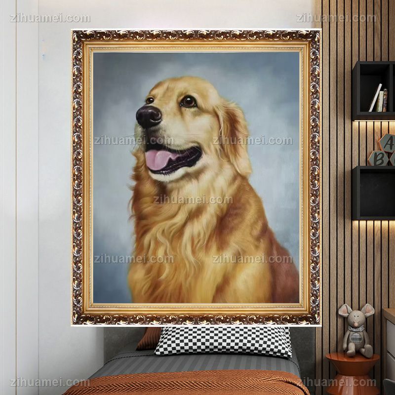 • 金毛庞物写实油画纯手绘动手油画儿童油画实木外框