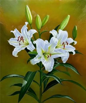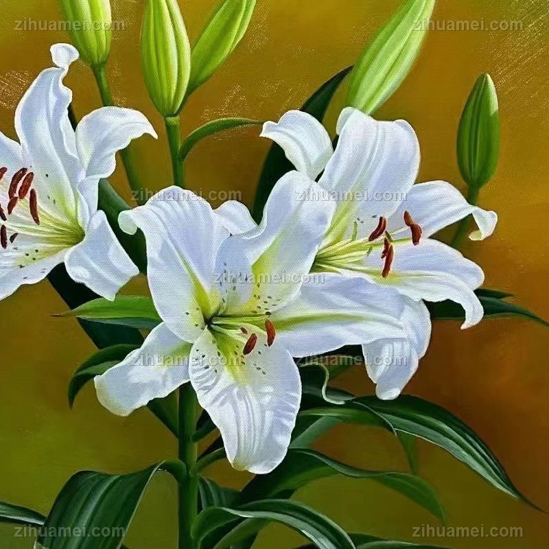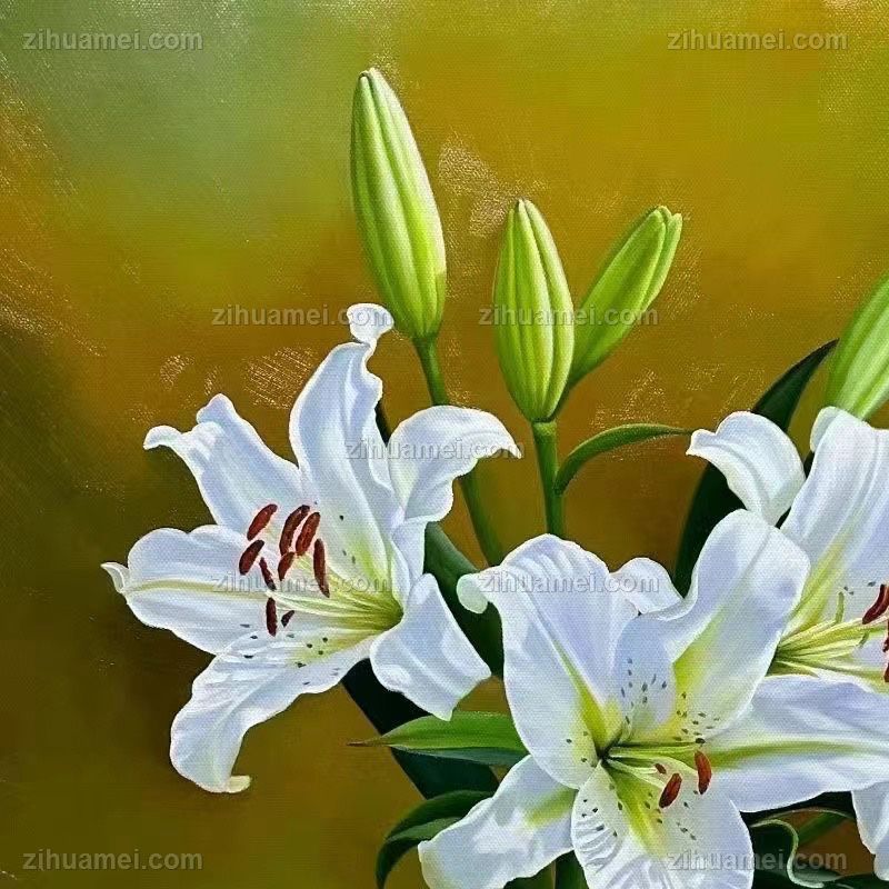 粉红色的百合花百年好合写实手绘花卉油画 手绘
