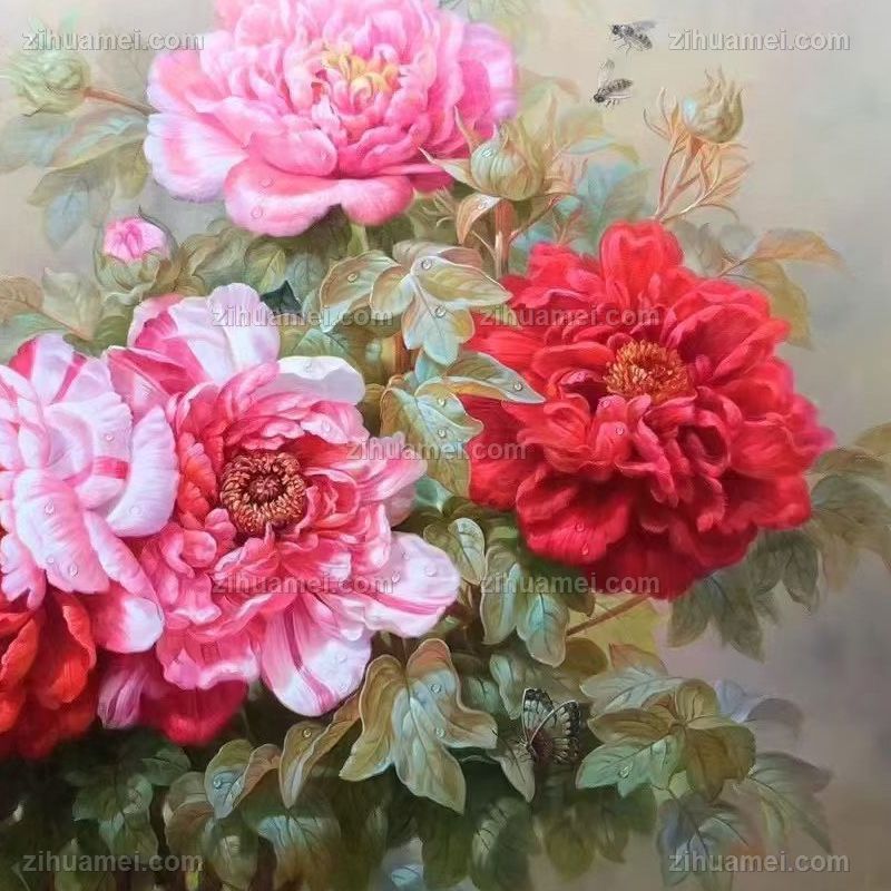 精品写实花卉油画牡丹花纯手绘油画花开富贵 手绘