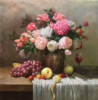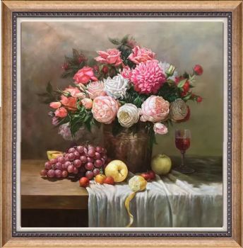• 欧式花卉油画作品纯手绘精品古典欧式油画大厅挂画实木外框