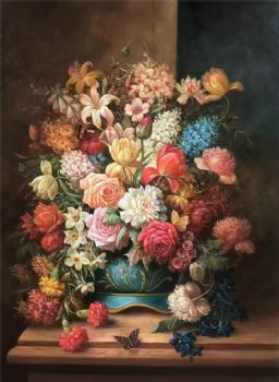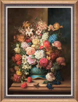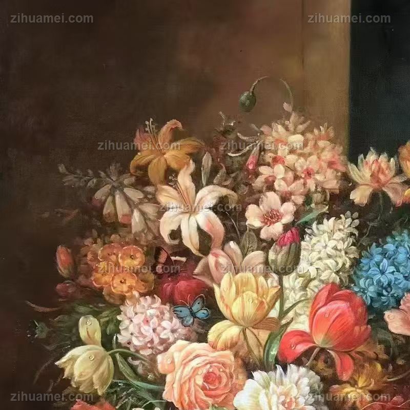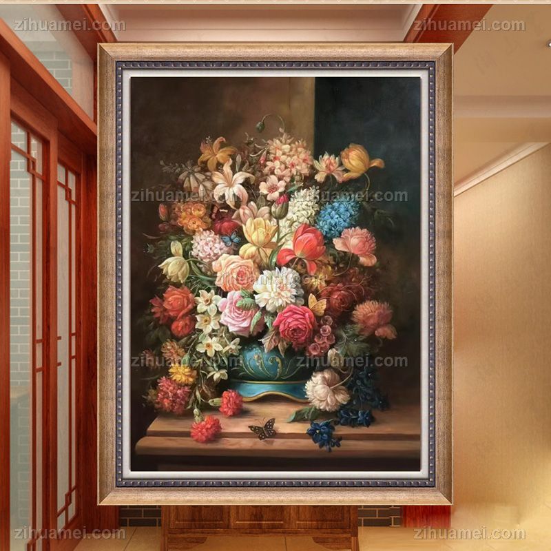 • 精品古典欧式花卉纯手绘收藏油画卧室挂画实木外框