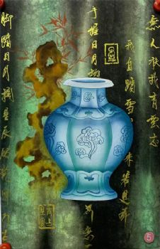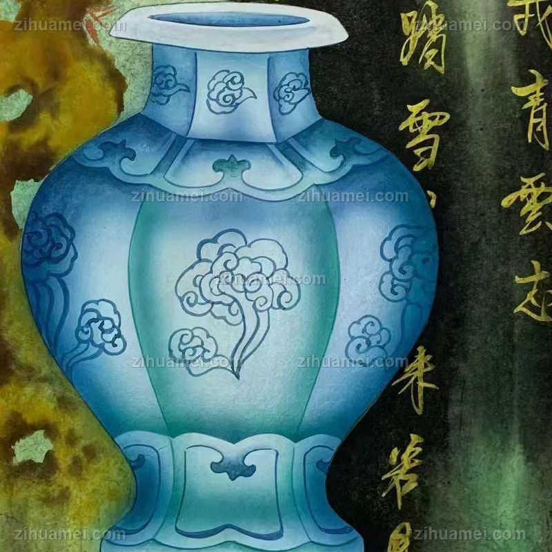 蓝色的花瓶水墨国画纯手绘花卉国画 手绘