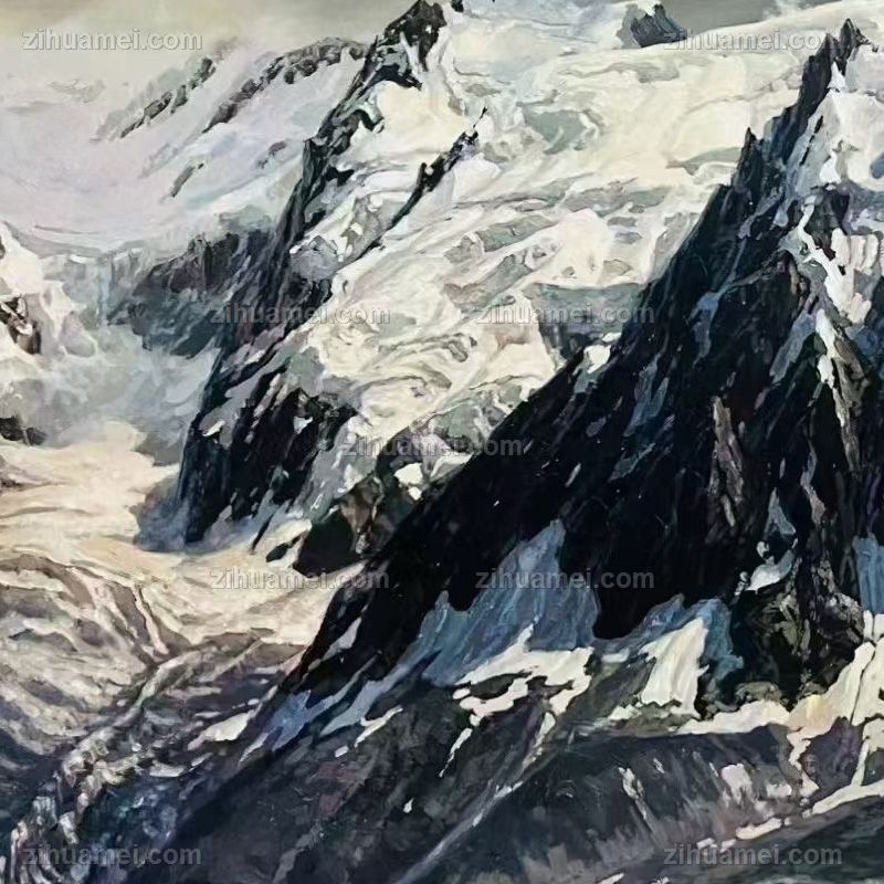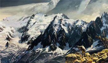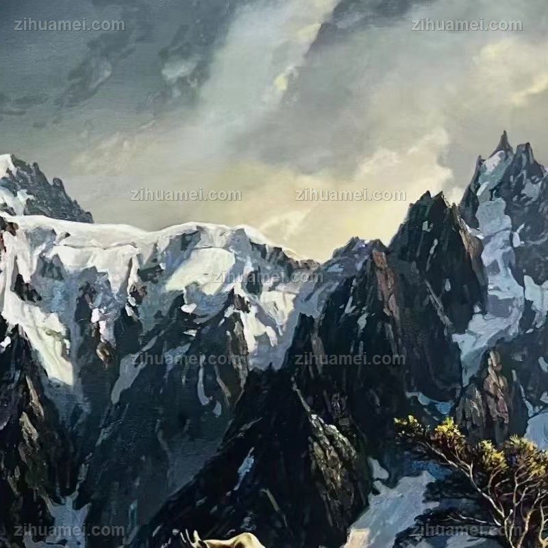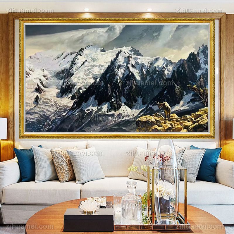 • 朝鲜山川风景油画雪山羚羊纯手绘油画大厅背景墙自然风景油画实木外框