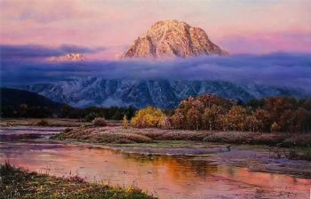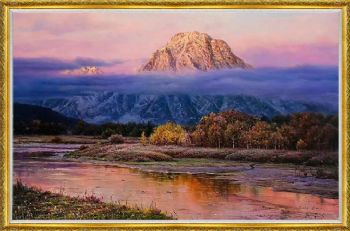 • 朝鲜风景油画西部山川自然风景手绘油画大厅精品油画实木外框