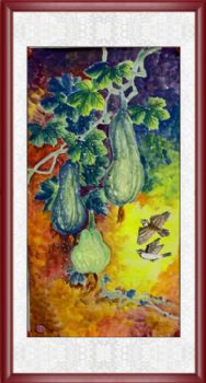 • 花鸟国画纯手绘小南瓜彩墨国画玄关装饰挂画实木外框