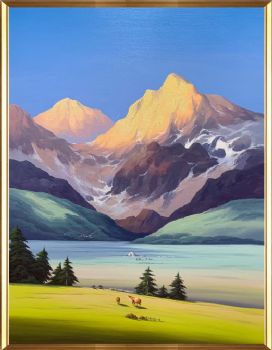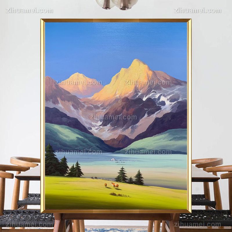 • 现代装饰风景油画纯手绘简约风山川风景油画实木外框