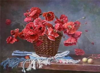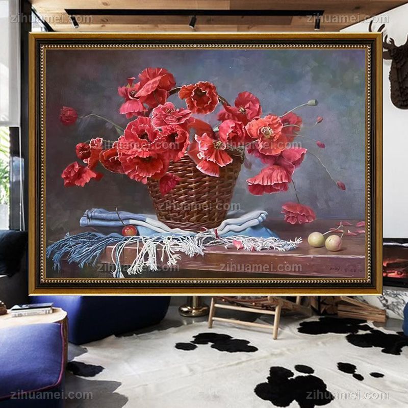 • 精品纯手绘花卉油画写实油画朝鲜油画花卉油画实木外框