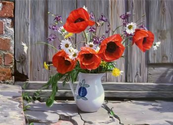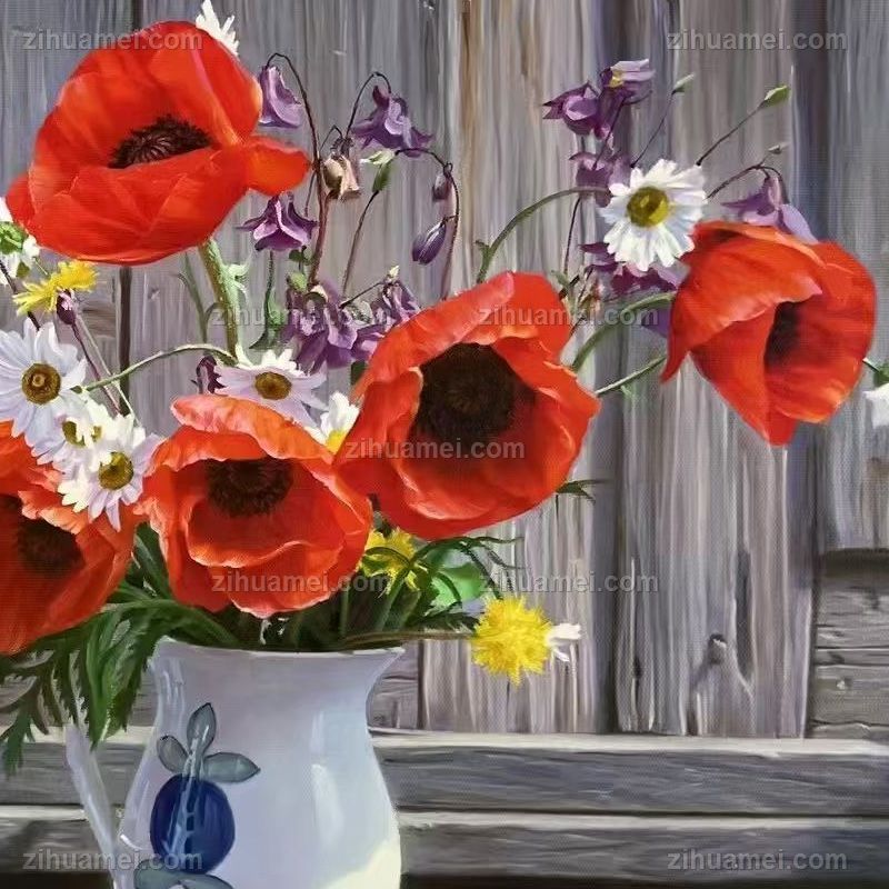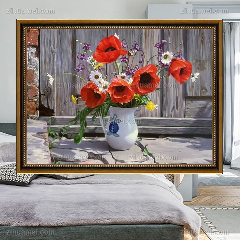 • 花瓶花卉油画纯手绘写实花卉油画朝鲜油画实木外框