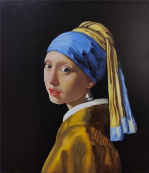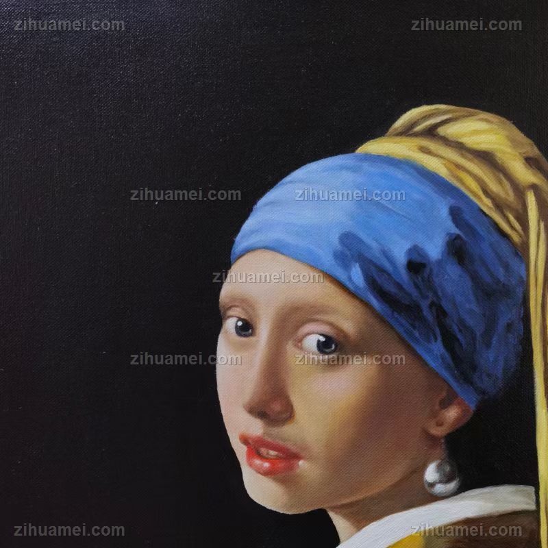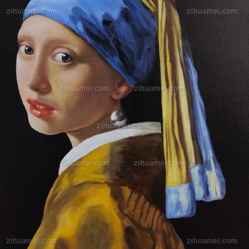 • 精品世界名画戴珍珠耳环的女孩写实人物油画纯手绘油画